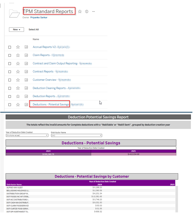 *Deduction Potential Savings Report